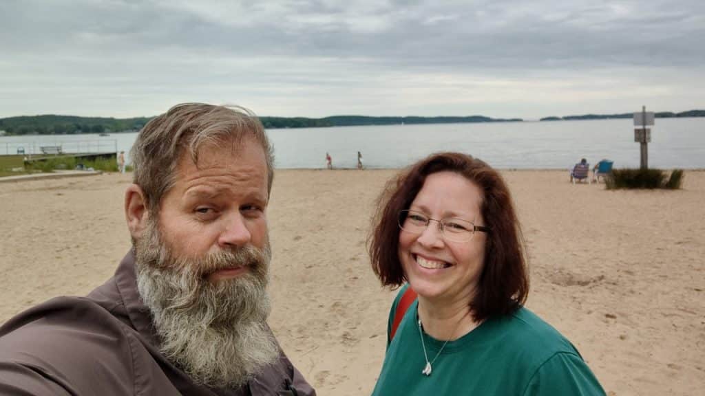 The artesian well stands at the end of Thirteen Mile Road at the Pierport Public Access Beach parking lot. Being right alongside Lake Michigan, I thought the water may taste fishy.