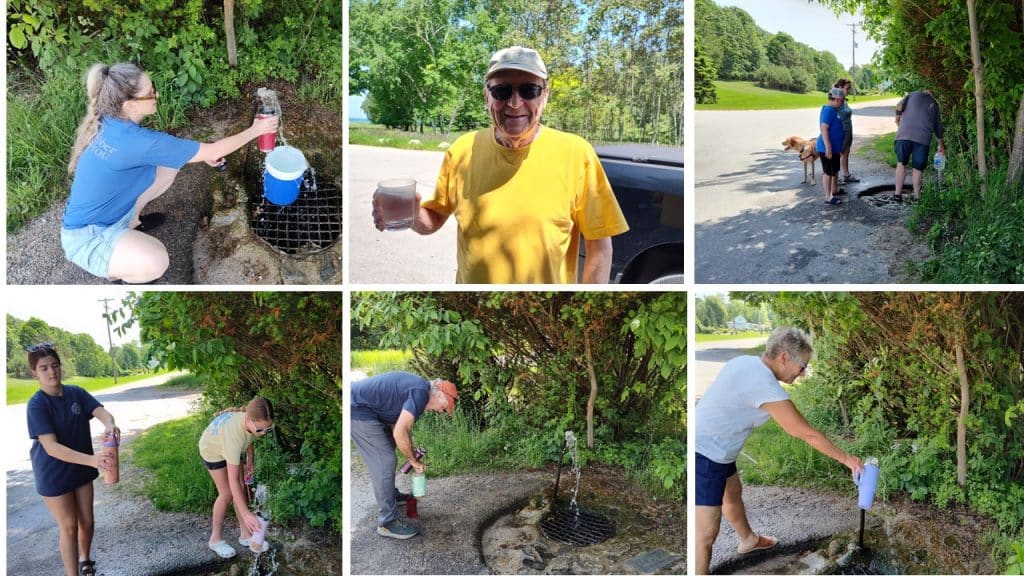 The postal carrier hopped out of her truck, “I stop by here daily.” she smiled as she refilled her container. Another woman stepped up with a blue cooler and an insulated cup. “I moved here three years ago. All the locals get water from here, so I tried it. It’s the cleanest I’ve ever tasted.”