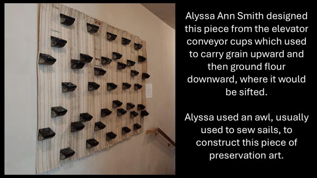 On this winter hike Kelsey also met Alyssa Smith, a visionary artist. Immediately, the two were bubbling with ideas about how to honor The Mill’s history. Smith’s artistic piece is displayed in The Mill.