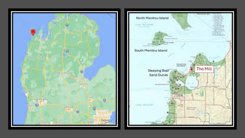 This Mill, along the Crystal River, holds 140 years of Glen Arbor history. The miller’s home is now a three room hotel. The structures have been refurbished beautifully with a nod to the extended history witnessed here. Join Chuck and I for a peek inside this reimagined space.