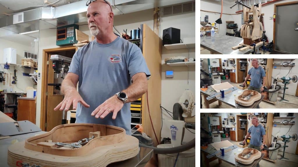 Gene brought out a form used for bending wooden panels into the body of a guitar. Gene’s artful descriptions painted a picture of each step in the process.