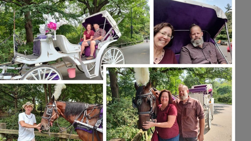Chuck generously hired a horse drawn carriage for a tour through the iconic park. After seeing many sights, I heard music lofting from behind the trees. Our horse’s hooves clomped in time with the tune. As we approached I could distinctly hear through the rustling foliage, “Let It Be,” one of FUNcle Bob’s favorites.