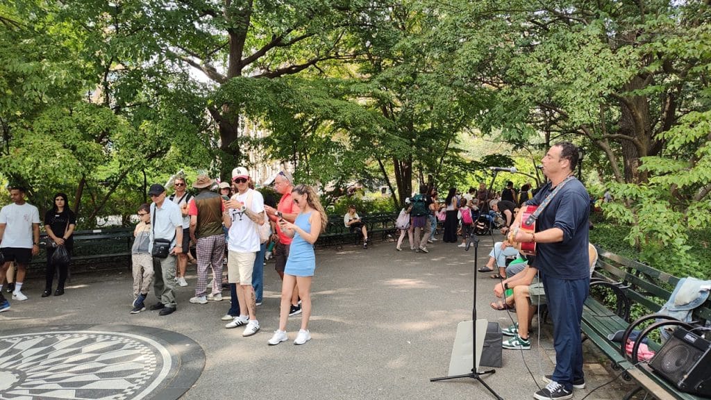 My shoulders relaxed as I sat on the bench, soaking in this moment, flipping through memories in my mind and feeling the power of John Lennon’s message, which still impacts our culture today. The musician began playing “Let me take you down, cause I’m going to Strawberry Fields . . .” Uncle Bob would have loved this!