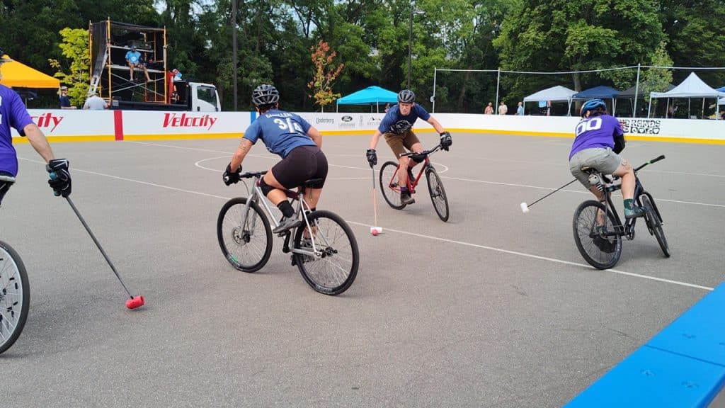 In the early 2000’s a group of Seattle bike messengers were looking for an engaging hobby while waiting for their next assignment. This was the beginning of hard court bike polo. Today, this version of bike polo has clubs nestled in cities around the globe.