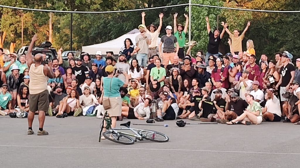 Another gentleman chimed in, “Carol got me started in bike polo.” He nodded, “After my injury she let me camp out on her couch. She’s one of a kind!”